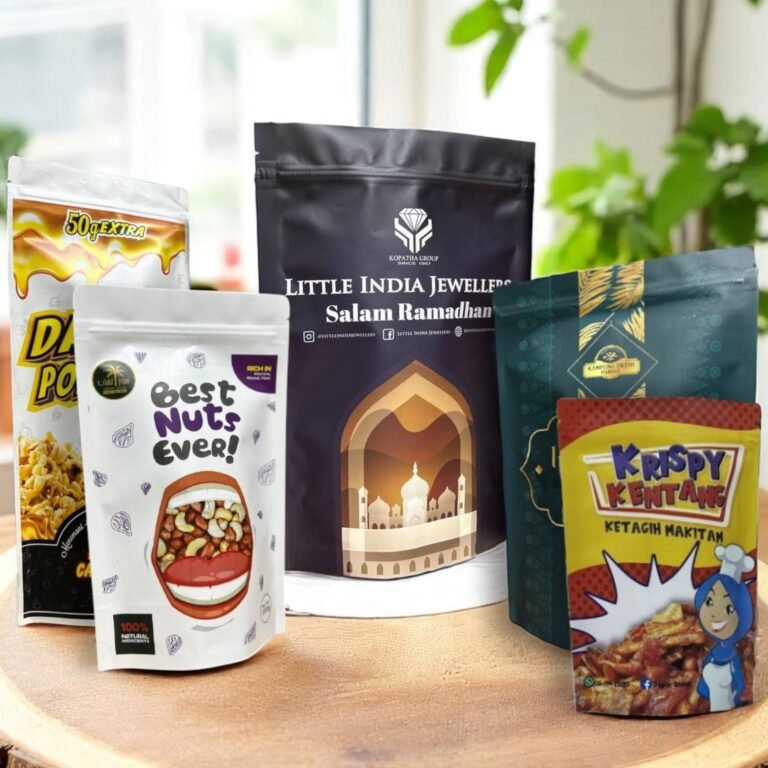 Material Foil/Nylon/Transparent Plastic pelbagai guna. Praktikal untuk product Ready to Eat, frozen food, makanan ringan, produk makanan dan packaging tudung.