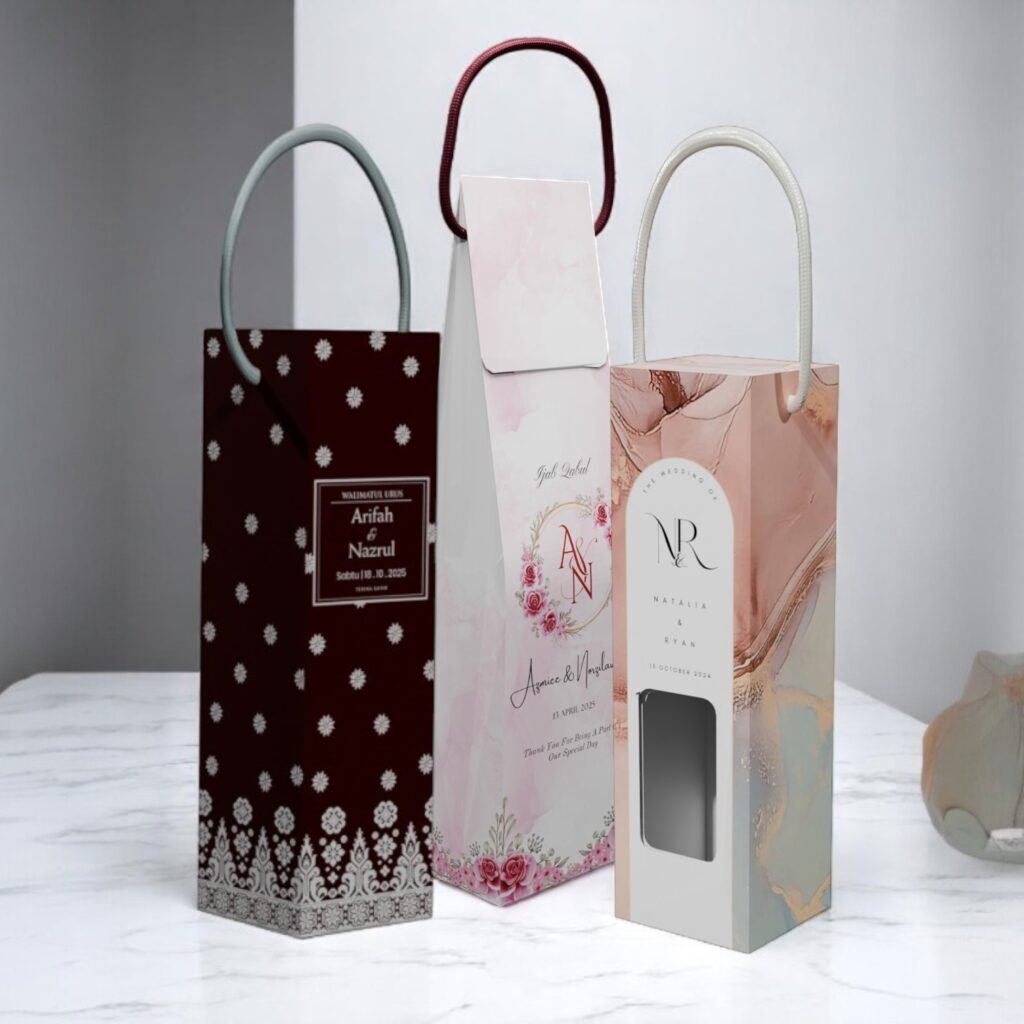 Doorgift paperbag kahwin yang simple dan eksklusif. Sesuai untuk majlis perkahwinan, tunang atau apa sahaja acara istimewa.
